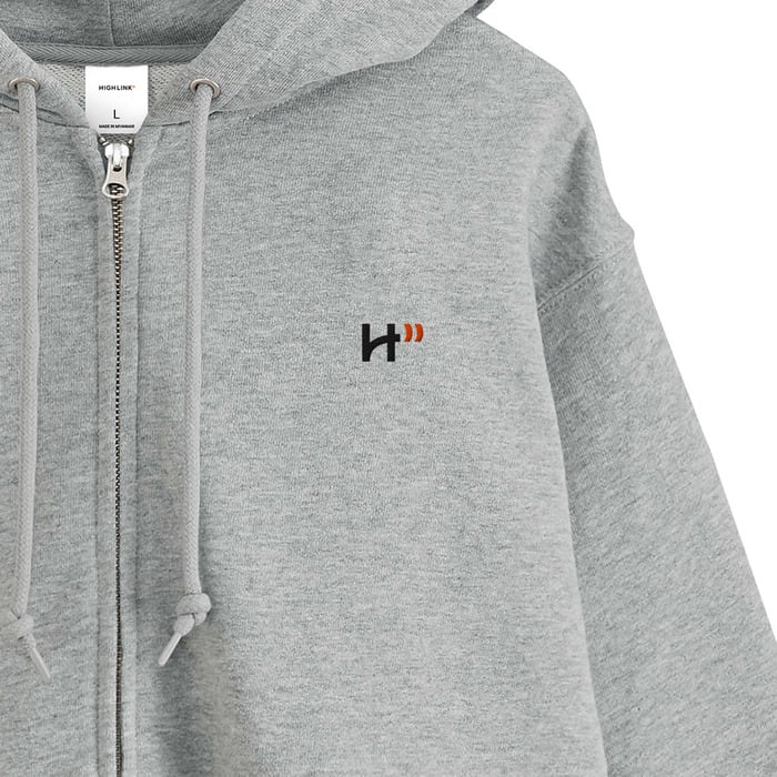 【刺繍】グレージップ付きパーカー×黒ハイマーク
