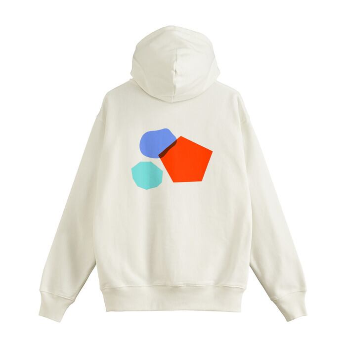 【プリント】白ジップ付きパーカー×背面モチーフ(レッド・ブルー・エメラルドグリーン)