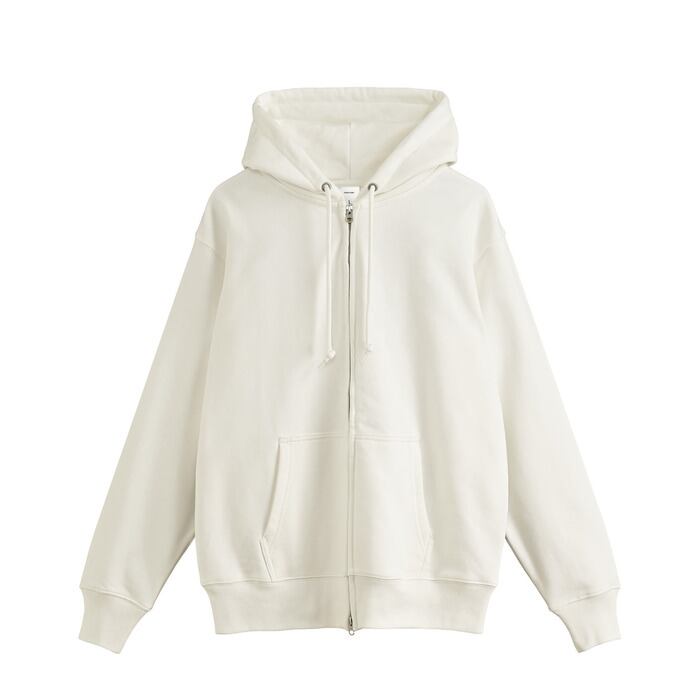 ダブルファスナーで脱衣と着まわしを兼ね備えたアウター感覚のジップパーカ。ヘヴィーでしなやかな裏パイルが魅力です。
