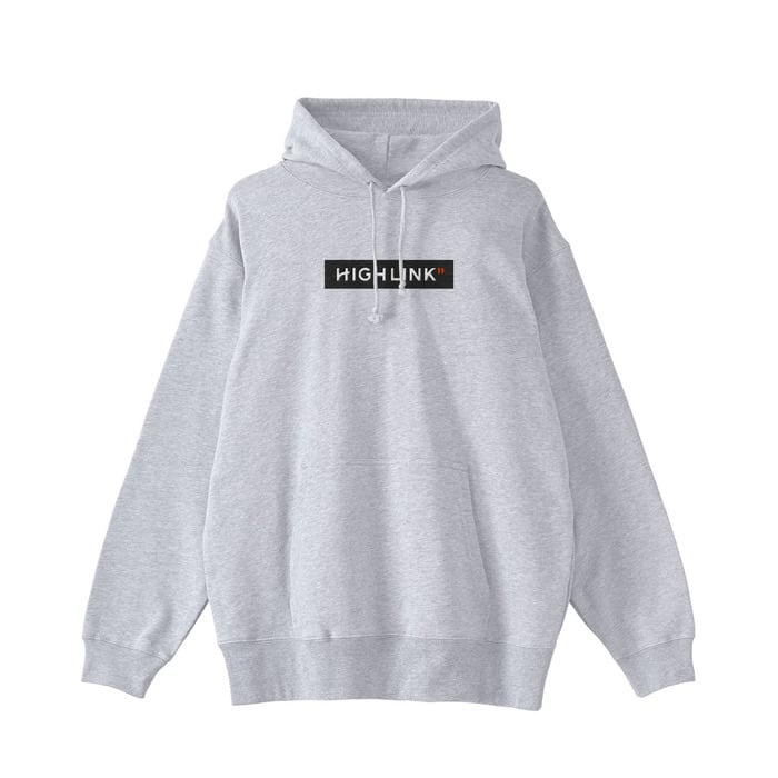 【刺繍】グレーフード付きパーカー×ステッカー風ロゴセンター