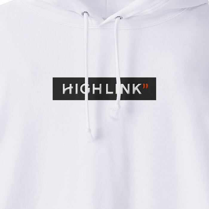 【刺繍】白フード付きパーカー×ステッカー風ロゴセンター