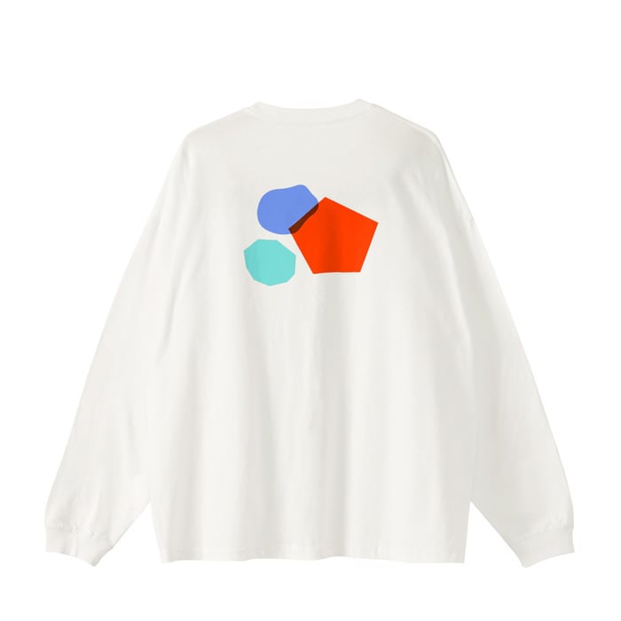 【プリント】白長袖シャツ×背面モチーフ(レッド・ブルー・ライトブルー)
